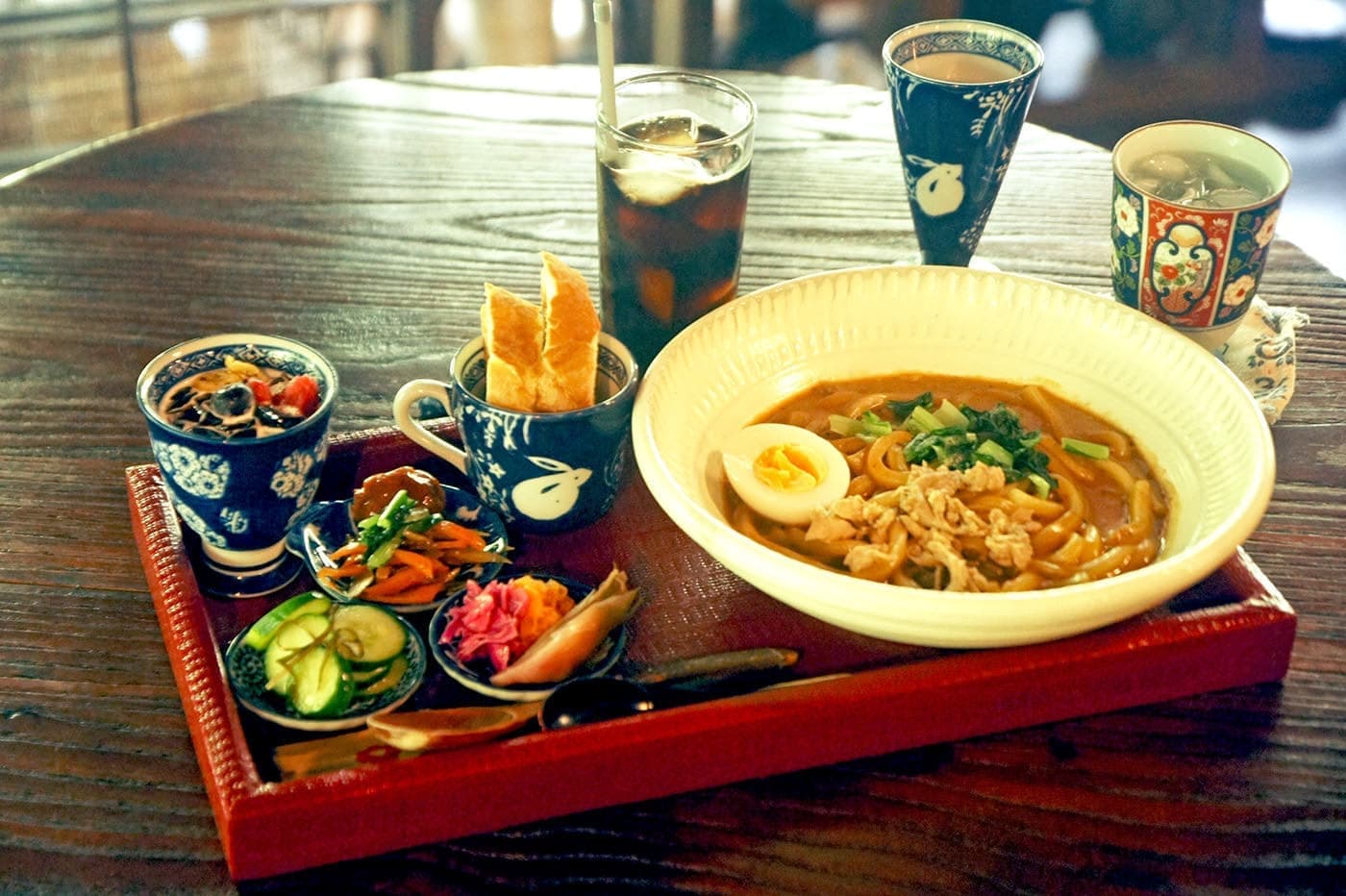 雑貨がメインという事もあり、お食事系メニューは「カレーうどん」のプレートの1品とシンプルですが、写真の通り、各種小鉢やミニスイーツ、そしてドリンクまで付いて、まさかの1000円(税込)!(2024年現在)