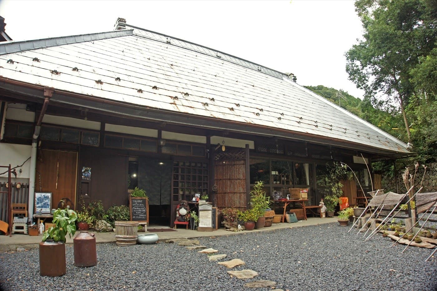 大子の西金という地域の山の方に入っていくと現れる集落。その中の一角に建つまさに古民家と納屋をアンティーク雑貨のギャラリー&カフェへとリノベーション。